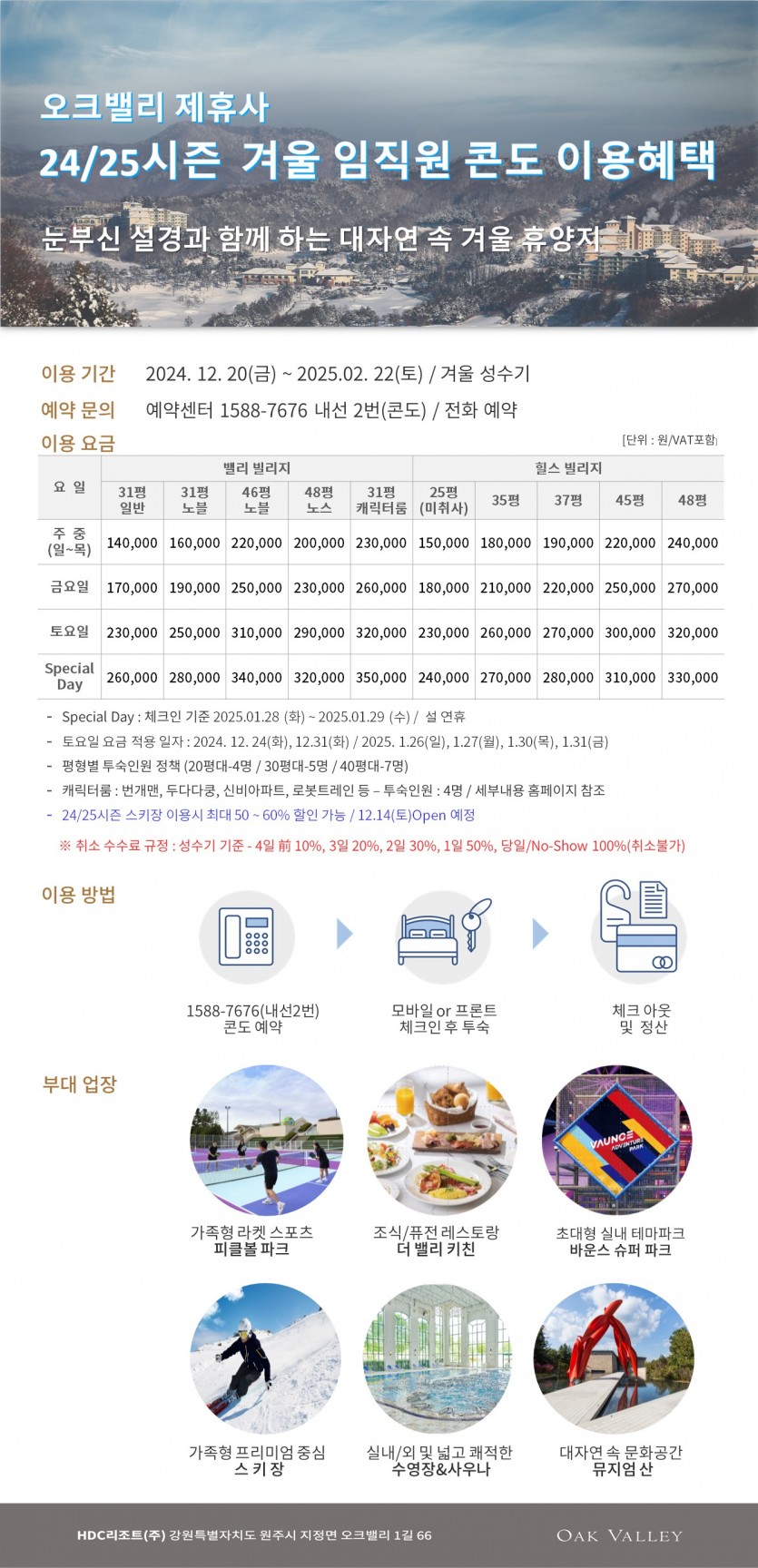 원주 오크밸리 겨울시즌 제휴가격 안내합니다.